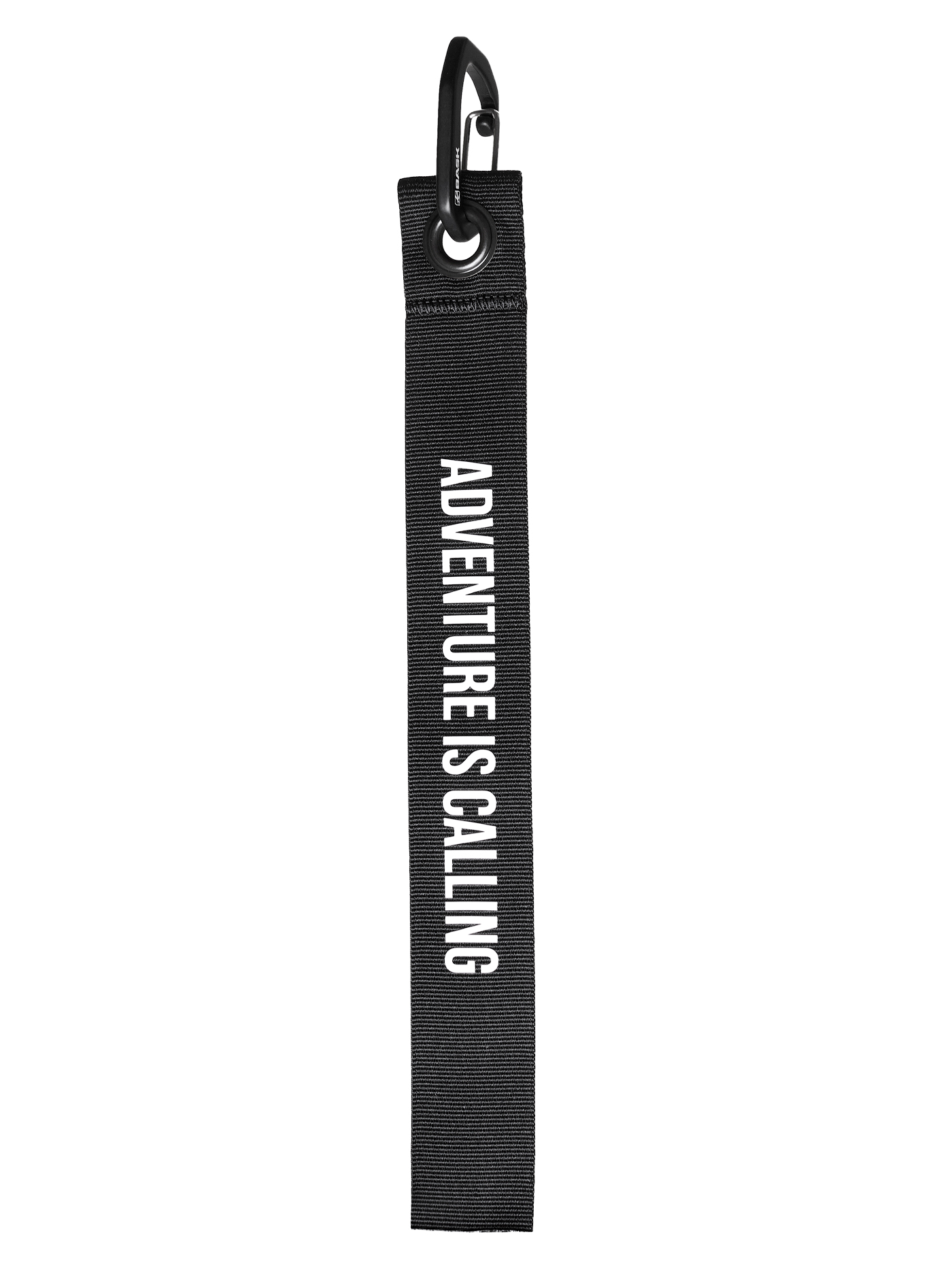 Брелок с мягкой лентой и карабином. Надпись "Adventure is Calling".
